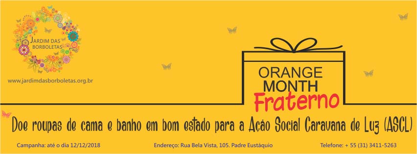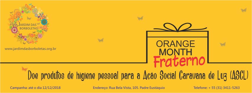 A Ação Social Caravana de Luz (ASCL), com muita alegria, realiza, até o dia 12 de dezembro, a campanha de Natal, “Orange Month Fraterno do Jardim das Borboletas”.